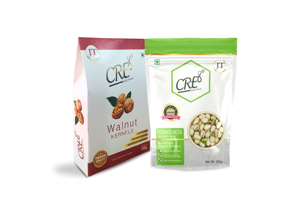Enjoy handpicked Premium Walnut Halves paired with crunchy Roasted & Salted Pistachios. A delicious, nutrient-rich combination for those who love high-quality snacking.